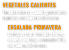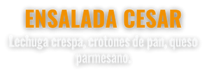 mix de lechugas,crotones de pan,queso parmesano,tomates cherry,cubos de pollo y aderezo de la casa